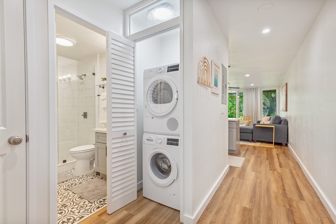 Outside, you'll find a private patio area, perfect for enjoying al fresco dining or simply soaking up the Hawaiian sun. The property is also equipped with a washer and dryer, ensuring you have everything you need for a hassle-free stay.