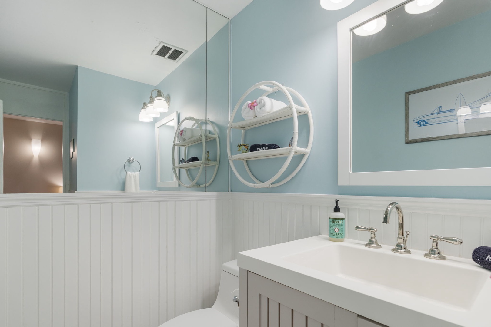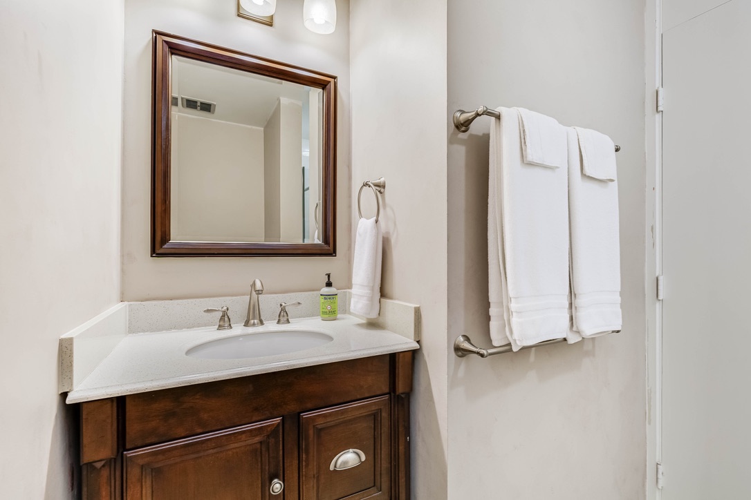 Each bathroom is elegantly appointed with modern fixtures, ensuring a luxurious experience. Additional perks include a BBQ area, beach essentials, and a communal pool for your enjoyment.