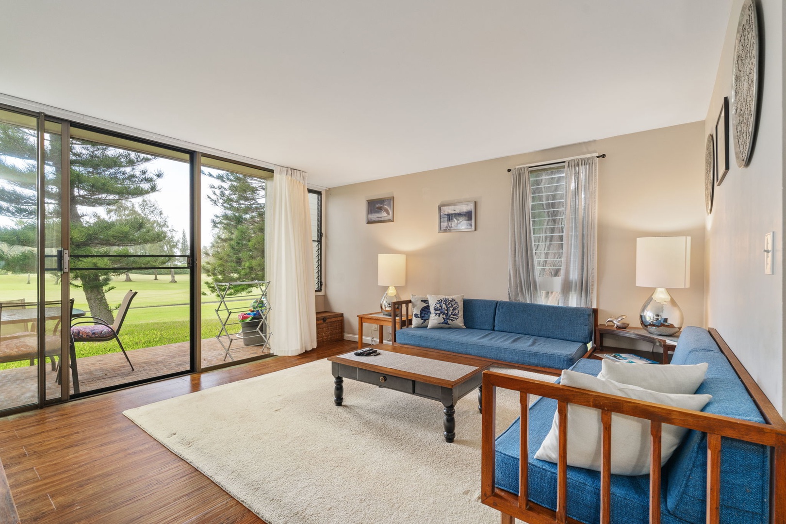 Step inside to discover a thoughtfully designed living space, complete with a cozy living room, a fully equipped kitchen, and a dining area that opens to a serene patio. The master bedroom features a plush king bed, while the second bedroom offers a set of bunk beds, ideal for families or friends traveling together.