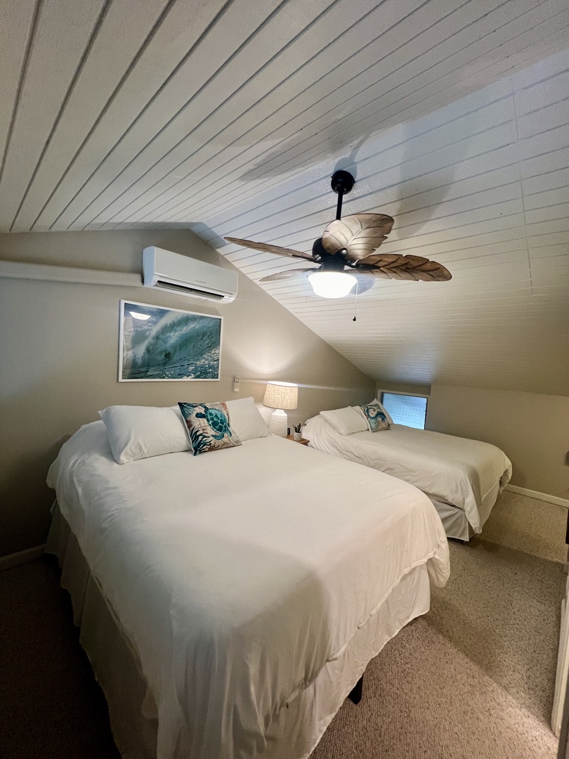 Welcome to "Nalu Aloha ~ Love and Aloha," your serene retreat nestled in the heart of Kahuku. This charming two-bedroom, two-bathroom vacation rental is perfect for families seeking a cozy and comfortable stay. The master bedroom features a plush king bed, while the second bedroom offers two cozy queen beds, ensuring a restful night's sleep for all.